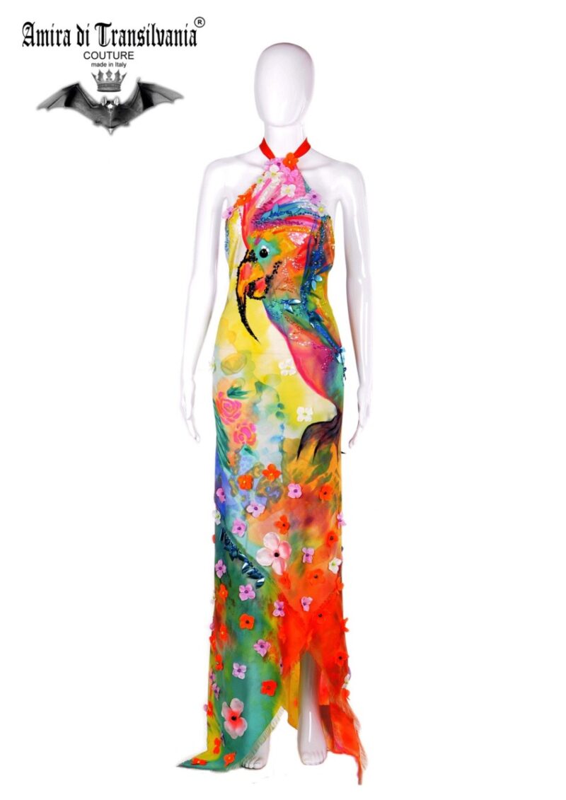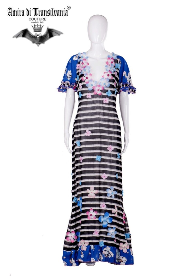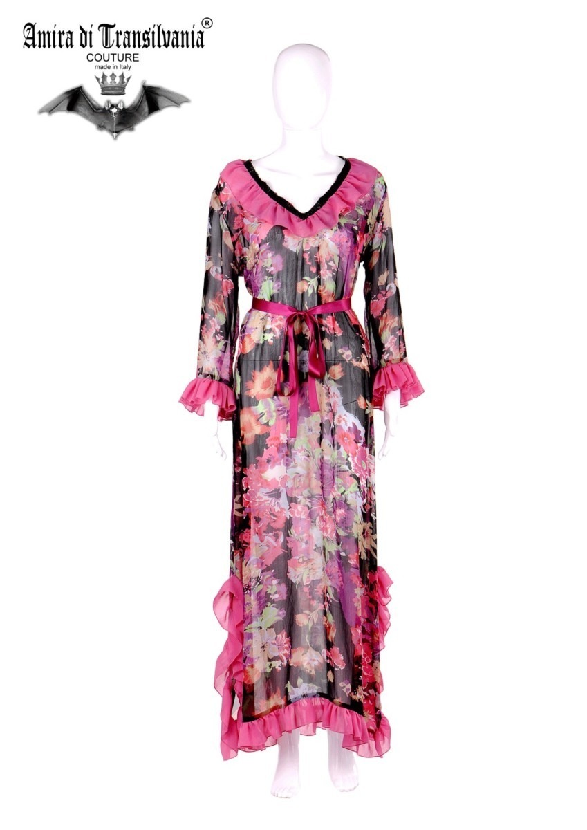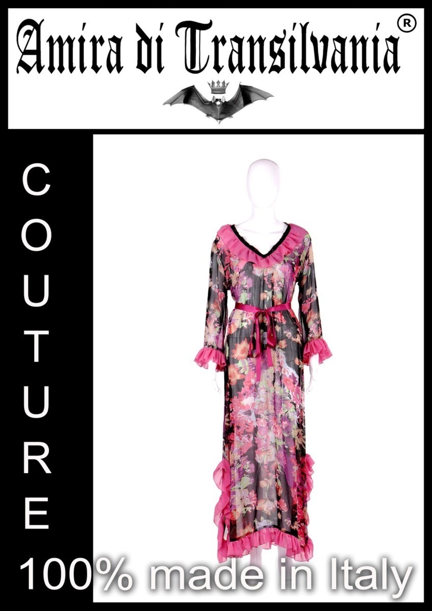 Abito couture in chiffon di seta fantasia floreale