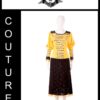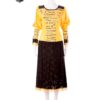 Polsi e spalline in vernice e tessuto stampato fantasia ”scrittura da lettera”, rifinito a sbieco