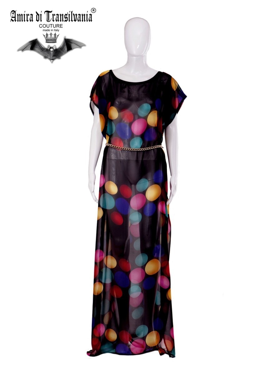 Classico e prestigioso,  Caftano nero con stampa a pois