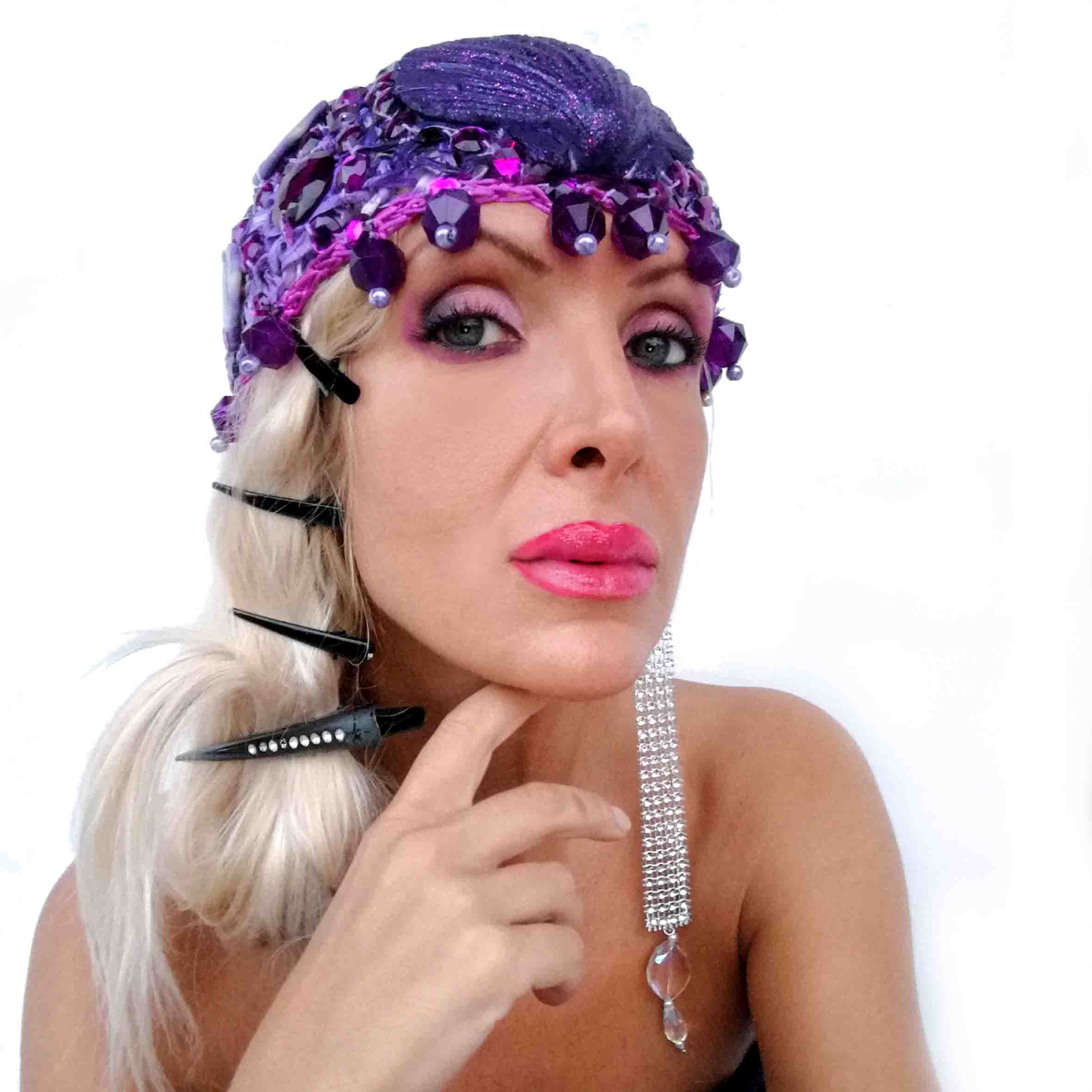 Cappellino ad uncinetto con conchiglia viola distinguerà il vostro out-fit nelle occasioni importanti.