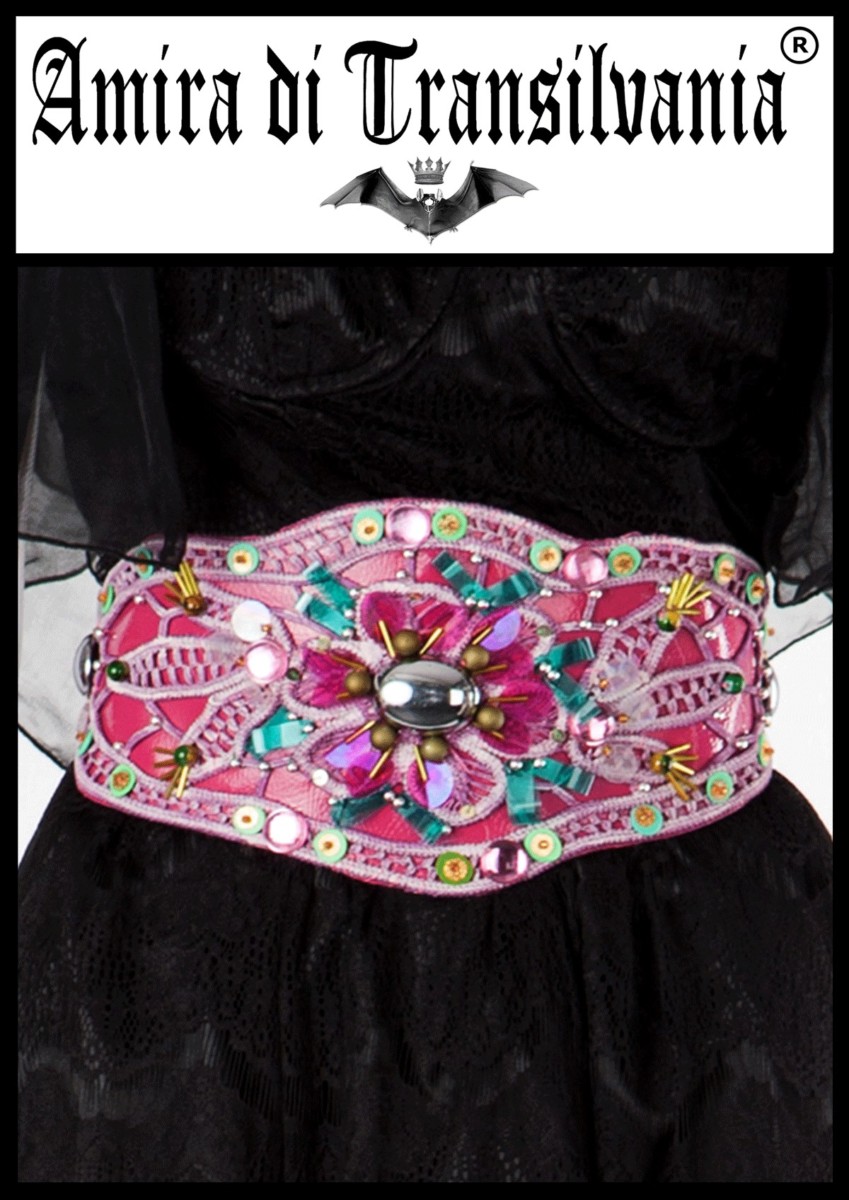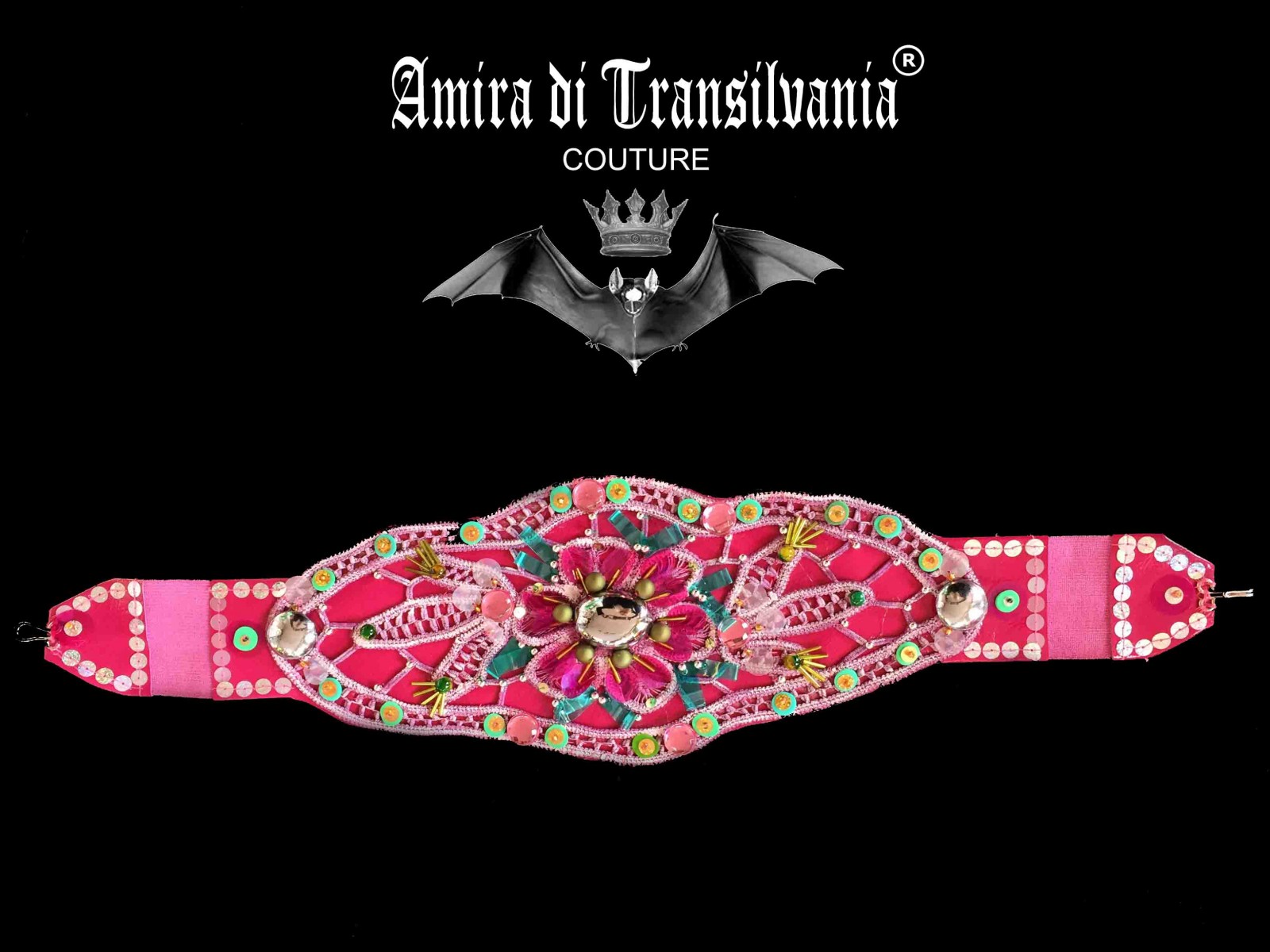 Preziosa cintura gioiello fiore rosa , un accessorio inedito di grande stile , pregio e manufattura italiana.