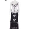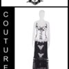 Completo nero e bianco con corset e gonna in pizzo e ricamo