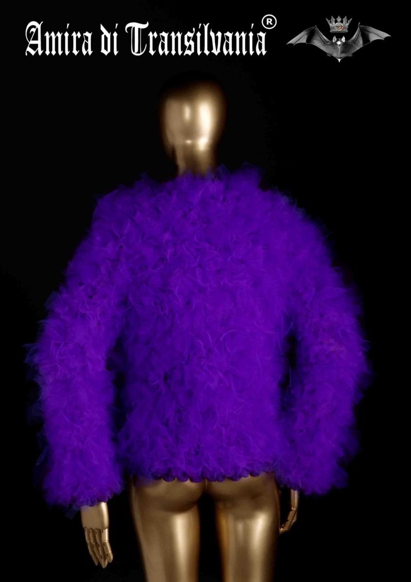 Pelliccia ecologica in nodi di tulle viola