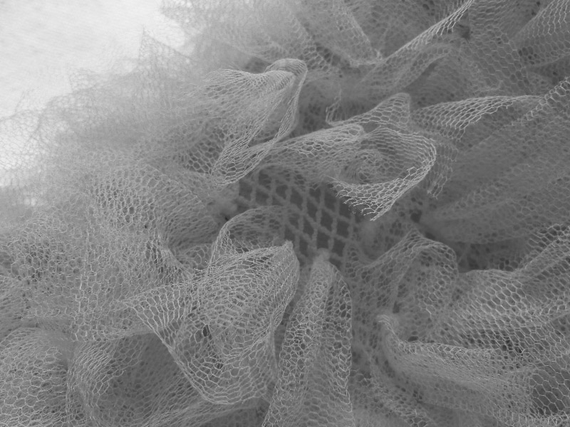 Realizzata in nodi di tulle, rispettando il brevetto KNOTFUR.